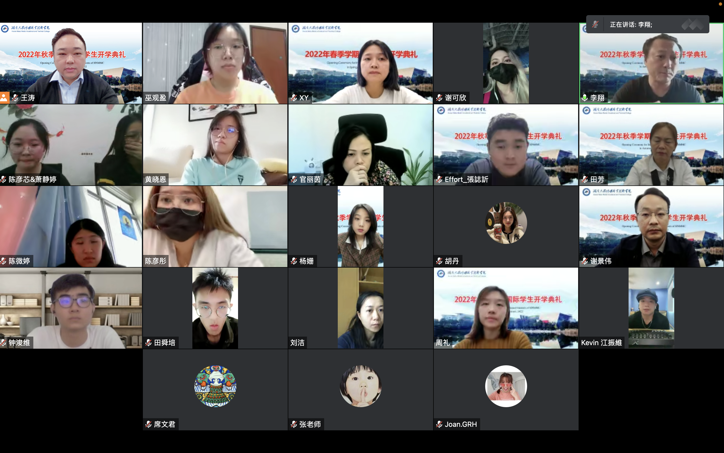 国际交流处、影视艺术学院相关负责人,授课教师及来自马来西亚的11名国际学生参加线上开学典礼。