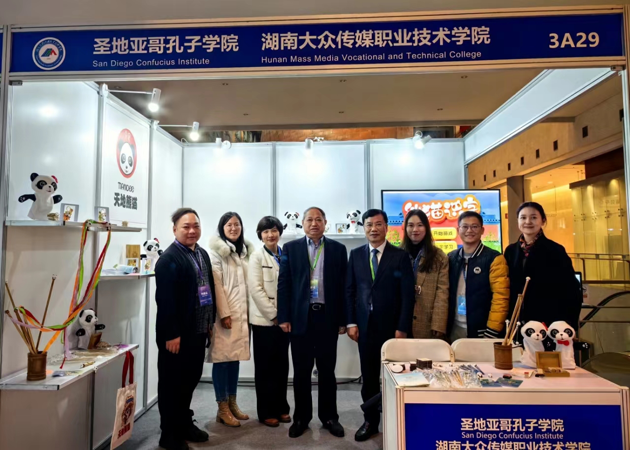 学校与圣地亚哥孔子学院合作开发的“天地熊猫”中文教学资源包以及学校师生自主研发的“熊猫识字”互动游戏在大会语言展上展出,受到与会中外代表的一致好评。展会期间,湖南省教育厅副厅长王仁祥一行参观了我校展示区,对我校在国际中文教育领域的创新成果给予肯定,并鼓励学校在国际中文教育事业中赓续前行,奋楫争先。