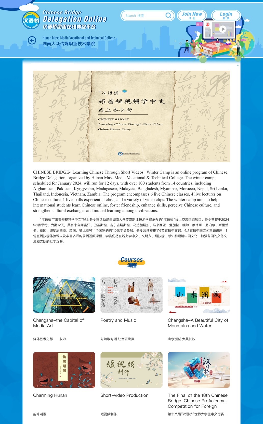 (国际交流处 供稿)近日,由教育部中外语言交流合作中心主办、我校承办的“跟着短视频学中文”——“汉语桥”线上冬令营顺利结营。本次线上冬令营是学校结合国际中文教学的优势与传媒办学的特色,面向各国学生举办的“中文+传媒职业技能”学习体验项目。活动吸引了来自全球14个国家的107名中文爱好者,开展了为期12天的学习和交流,成为各国学员们一次难忘的学习经历。
